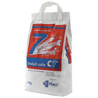 La pâte obtenue, de couleur blanche, permet de réaliser tout type de travaux. Informations sur le produit. Enduit colle multi-usage Placo C7. Caractéristiques et avantages.